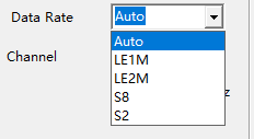 As shown in the figure, you can choose various rates of Bluetooth, Auto is the command of the old standard version of BLE 1Mbps, which is suitable for products with only BLE 1Mbps. LE1M is the command of the new standard version of BLE 1M, similar to the command format of LE2M, S8 and S2, and can be used in the new products that support LE2M and LE long range, both Auto and LE1M can test the 1Mbps rate.