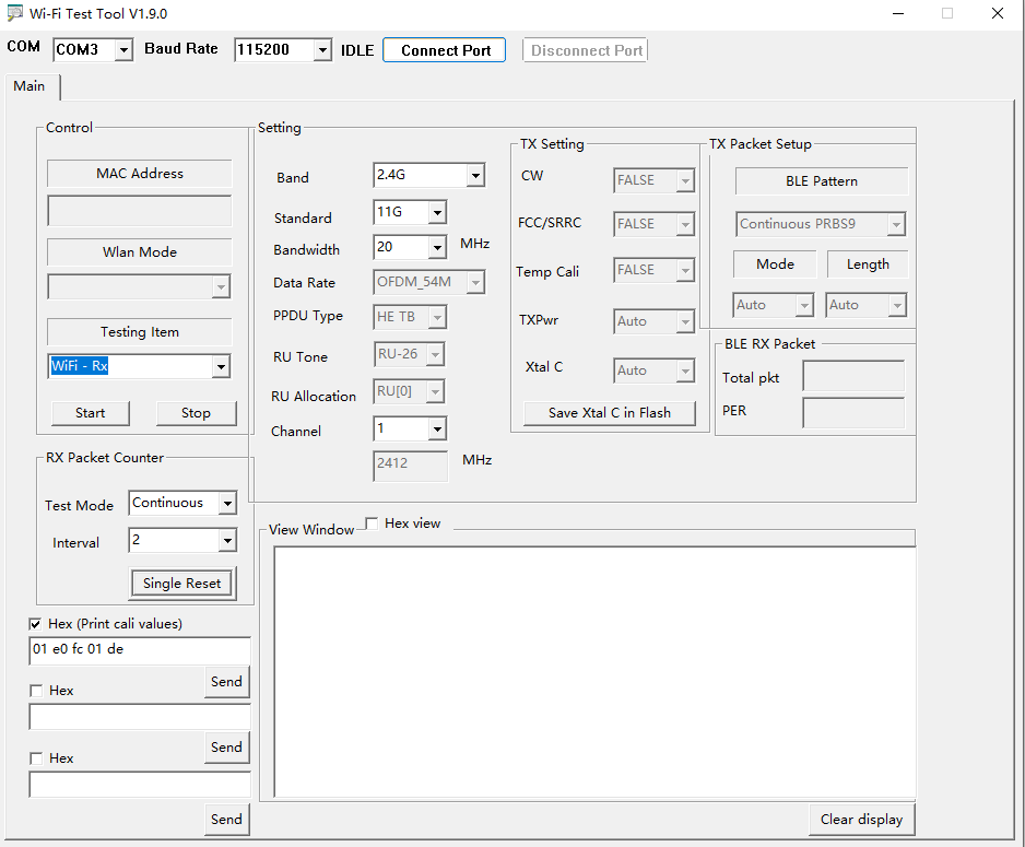 “RX Packet Counter”:WiFi 非信令接收测试,需要在“Testing Item”中选”WiFi -Rx”。